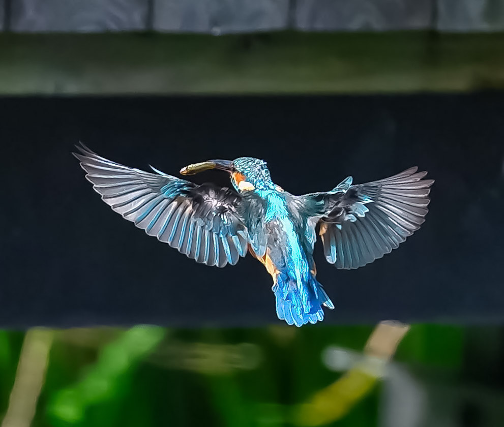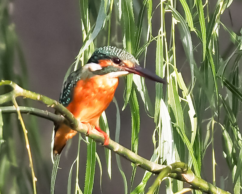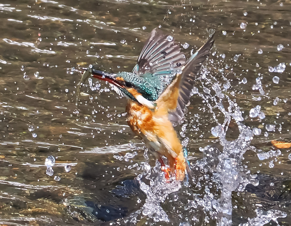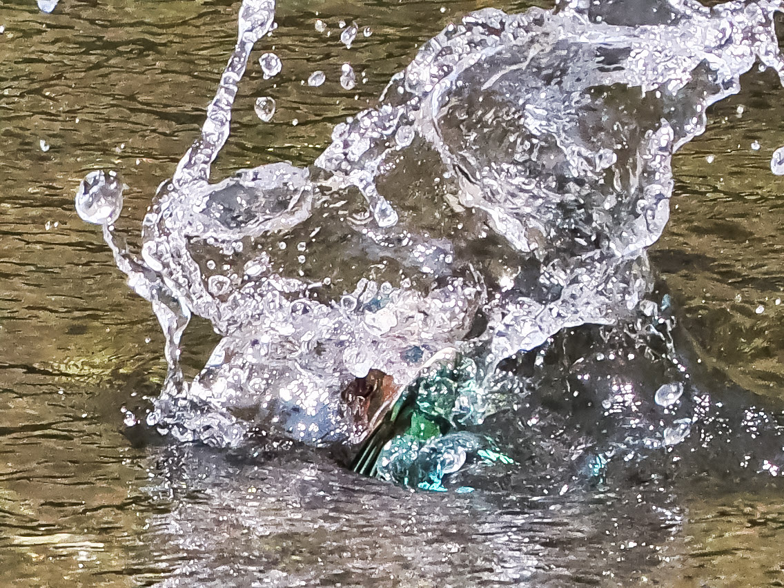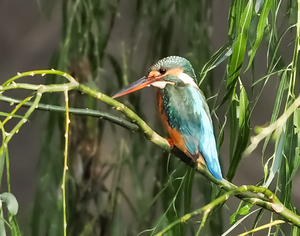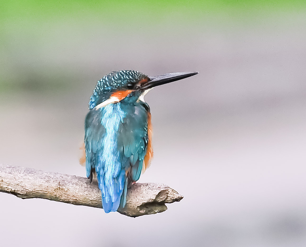 縄張り争いの追いかけっこの合間にやっと出て来たカワセミの若