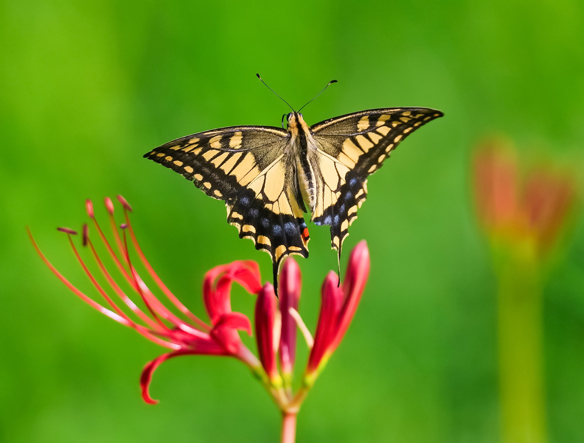 彼岸花にアゲハチョウが来てくれてカワセミ待ちの暇つぶしになりました(笑)
