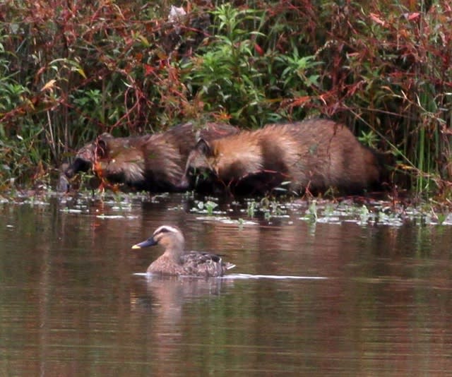 2015-10-11 11/October 雨上がりのコスモスとタラの木とタヌキとカワセミ 花 こんばんは~(^o^)/ 今日はあいにくの雨で朝から昼過ぎまでは冴えない景色でしたが午後からは少し晴れ間も見えました🎵 雨上がりのコスモスは綺麗ですね。 ビオトープの自然公園の池にはタヌキのカップルでしょうかね⁉︎、初めて見かけました。 これは昨日見かけたタラの木の花序と黒い実でした。タラの芽は春に天ぷらでいただきましたね。 今週のカワセミはチラ見だけでした(≧∇≦)💦