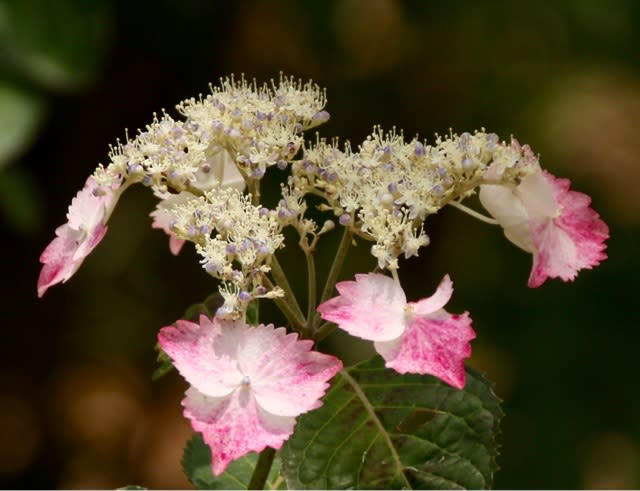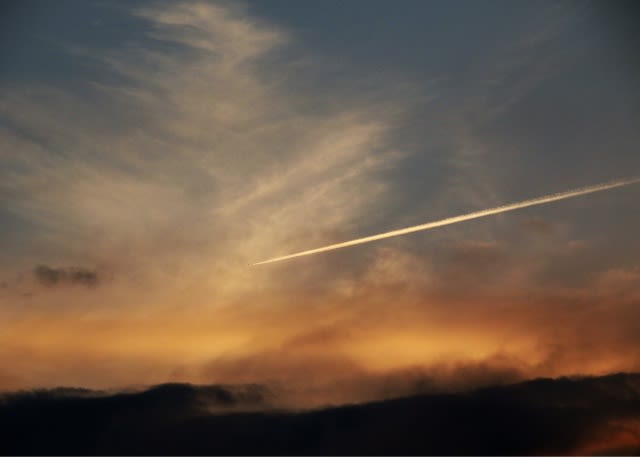 2016-06-09 09/June 夕焼けの月と飛行機雲と紫陽花 月 こんばんは~(^o^)/ 夕方にはかなり天気が良くなっていて夕焼けの月や飛行機雲が綺麗でした(*^_^*)!、 山アジサイのピンクはお気に入りですね(笑)