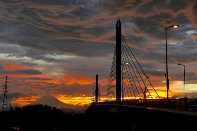 2016-08-22 22/August 台風9号の後の夕焼けとキョウチクトウとコサギとニャンコ 富士山 こんばんは〜!、お疲れ様でした。 台風9号の暴風雨も夕方には無くなり、湘南銀河大橋と富士山の夕焼けが見えてました。 昨日のキョウチクトウとコサギとニャンコ一家ですね。 台風は上手く乗り切れたかな⁉︎
