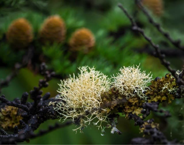 2017-08-21 21/Aug 奥庭自然公園のカラマツとルリビタキと柳蘭 鳥 こんばんは(*^_^*)❗️、お疲れ様でした。 やっと奥庭の野鳥や草花まで現像が出来る様になりました。 今日の写真は朝露に光るカラマツの松ぼっくり これは地衣類でしょうかね、スポンジみたいでした。 ルリビタキのカップルですね。 高山植物の柳蘭とミツバチくんですね♫