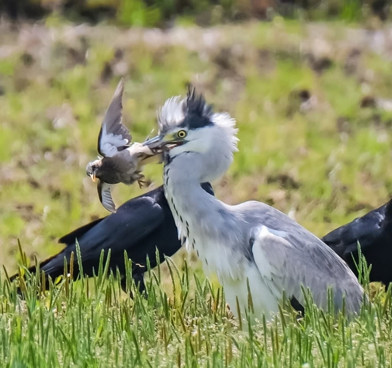 2020-05-03 03/May ムクドリゲットのアオサギと野鳥たち 野鳥 近所の田んぼでムクドリをゲットするアオサギを見かけました。お化粧して綺麗になってたダイサギくんでしたが、いつの間にか猛禽類みたいに変身して獰猛感タップリですね😓💦カワラヒワです。つばめが綺麗でした。ハナアブのホバリングです。あまり姿を見せなくなったカワセミです。カワセミのダイビングお魚ゲットのシーンが綺麗に撮れたらX-T4で全てのマイテーマをこなせそうです♬
