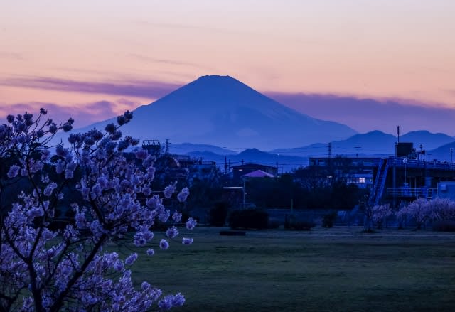 朝活散歩の春めき桜はもう満開で富士山とのコラボが綺麗でした。