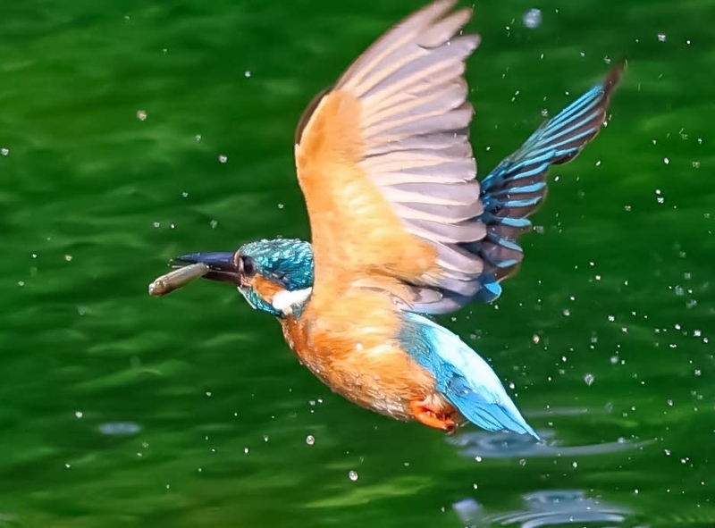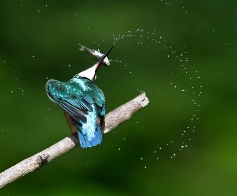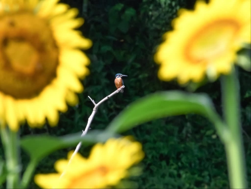 2024-08-25 25/Aug 名残の月とヒマワリとカワセミ 野鳥 朝の雲間に見えた名残月はもう月齢20.4になってました。Z8 Z400mmf/4.5VR Sヒマワリとカワセミカワセミのダイビングお魚ゲット❗華麗なダイビングからの....しっかりお魚をゲットしてました。竹藪から出て来たチビクロ幼鳥