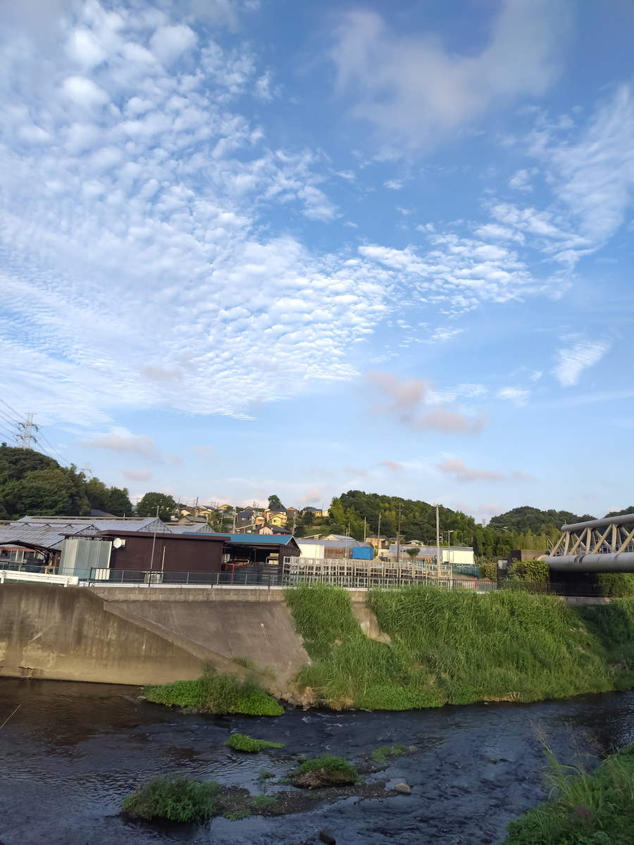 夕暮れは風が涼しくて、空には鱗雲も見えて少しだけ秋の気配を感じました。